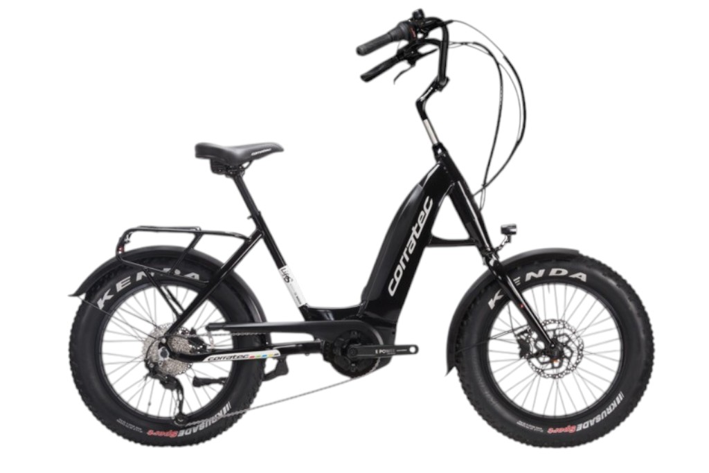 Besonders markant sind die breiten Kenda Crosser 20 x 4.0 Reifen, die für viel Fahrstabilität, Komfort und Grip sorgen. Sie verleihen dem Bike nicht nur einen eigenständigen Look, sondern unterstützen auch ein ruhiges, souveränes Fahrgefühl auf Asphalt, Schotter und befestigten Wegen. Ergänzt wird das durch komfortorientierte Komponenten wie den Ergotec Bügel EWG Lenker, den Ergotec Cobra Tube Vorbau und den bequemen Corratec PU Comfort Sattel.