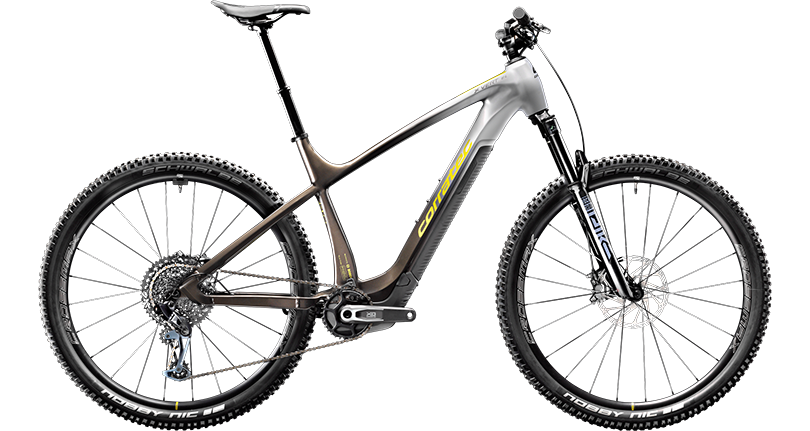 Schon optisch zeigt das E-Power X-Vert EL, wohin die Reise geht. Die Farbgebung in Brown, Silver, Green verleiht dem Bike einen markanten und hochwertigen Auftritt, während der sportliche Rahmen seine klare Performance-Ausrichtung unterstreicht. Mit einem Gewicht von nur 18,8 kg gehört dieses Modell zu den besonders leichten E-MTBs seiner Klasse und spricht Fahrer an, die ein aktives, lebendiges und spielerisches Fahrverhalten bevorzugen.